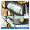 Este estante de secado de platos sobre el fregadero cuenta con una tapa práctica que proporciona una capa de protección adicional para tus platos, manteniendo la encimera limpia. Su diseño eficiente asegura que los platos se sequen adecuadamente en una cocina organizada y sin desorden.