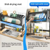 Versátil y con gran capacidad, el estante ofrece espacio suficiente para secar una variedad de platos, cuencos, tazas y utensilios. Los brazos y soportes ajustables permiten personalizar el estante para adaptarse a diferentes tamaños de fregadero, proporcionando un ajuste cómodo y seguro.